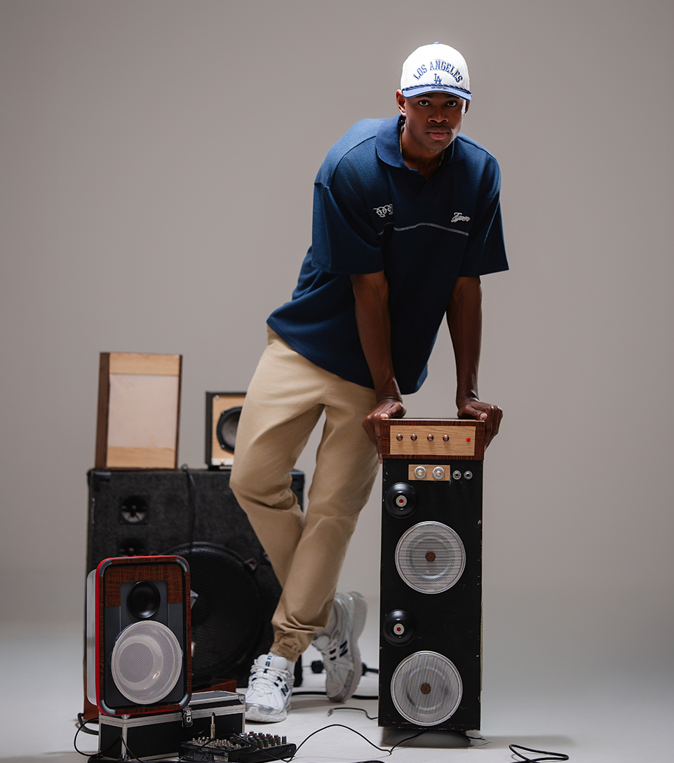 Sonic Street refleja movimiento y autenticidad con el polo Karl boxy, destacando cortes limpios y una vibra moderna. El jogger Unser aporta confort y estilo urbano, mientras la gorra New Era 940 MC Chrome y los tenis New Balance Lifestyle cierran un look con ritmo y presencia en cada paso.