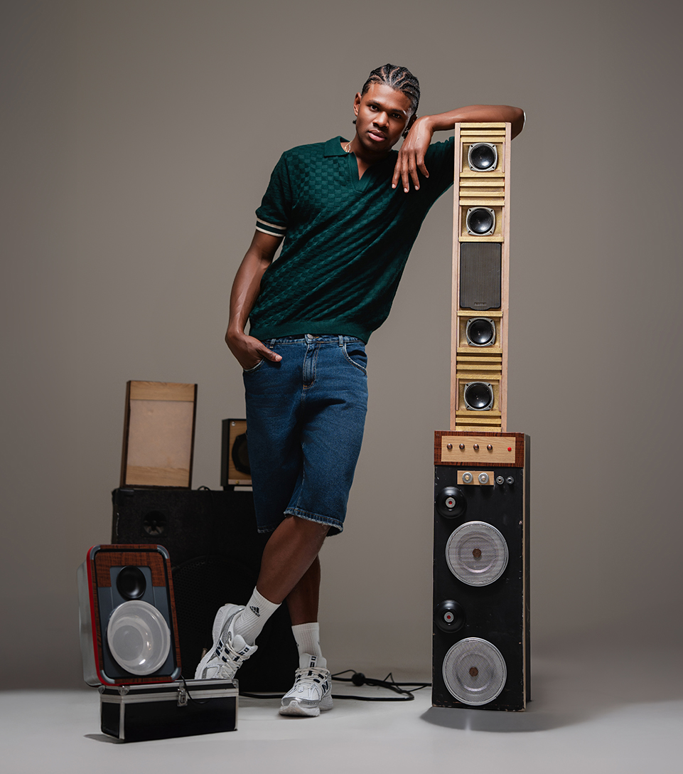 Soundcrafted mezcla precisión y flow con el polo Cian tejido, aportando textura y estilo sin esfuerzo. El jean Dam carpintero añade un toque funcional y urbano, mientras los tenis New Balance Lifestyle sellan el look con equilibrio entre confort y actitud sonora.